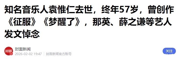 2日,华语乐坛失去一位灵魂推手:著名音乐制作人袁惟仁于家中辞世,年仅五十余岁。
